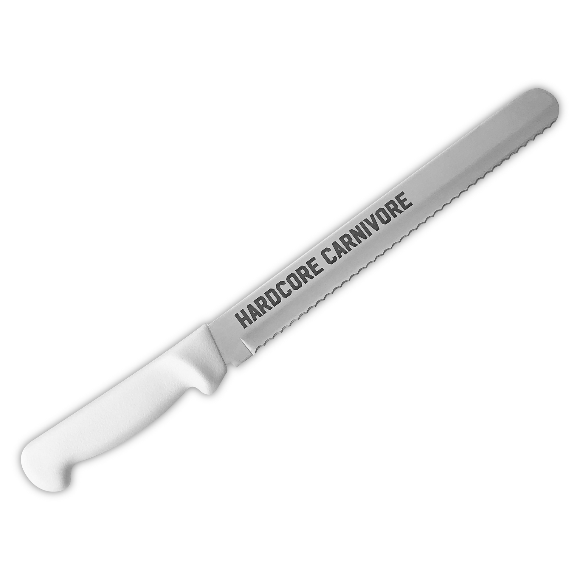 Features the Hardcore Carnivore logo along the blade. This is the exact type of knife used and preferred by most Texas restaurant pitmasters. Dishwasher safe but hand washing is recommended.