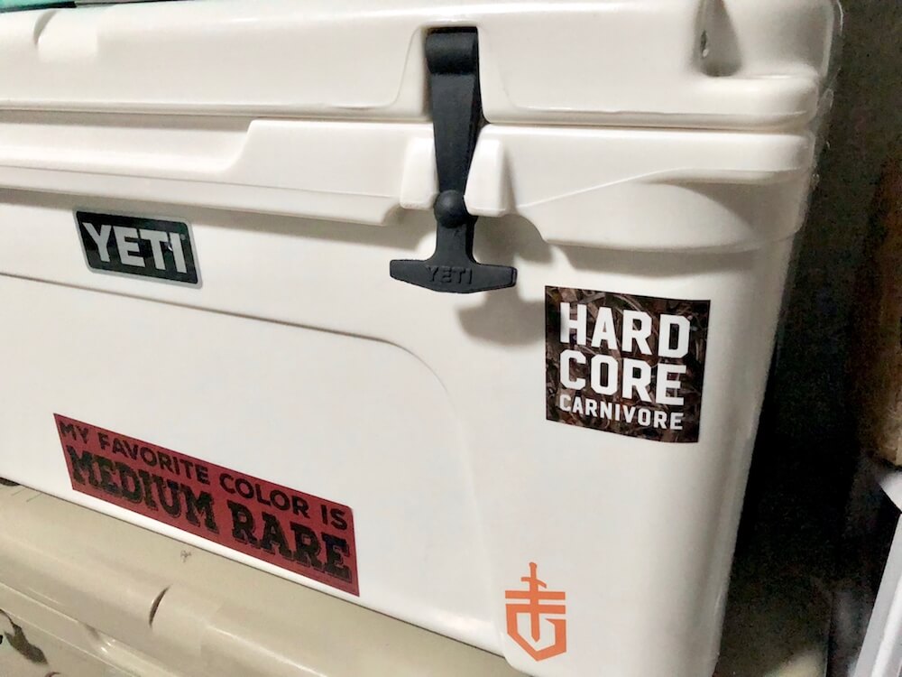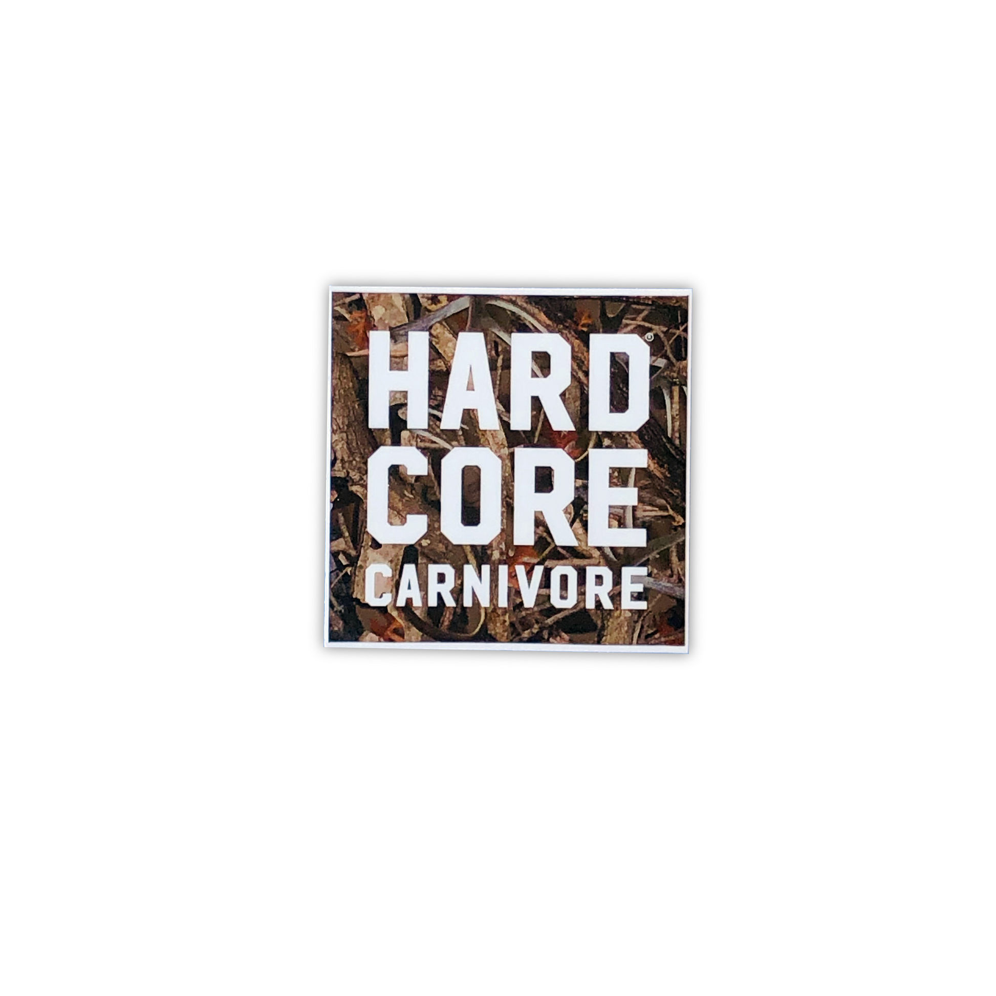 High quality vinyl decal sticker with our proprietary Hardcore Carnivore camo pattern, perfect for your cooler or truck. 3" x 3".