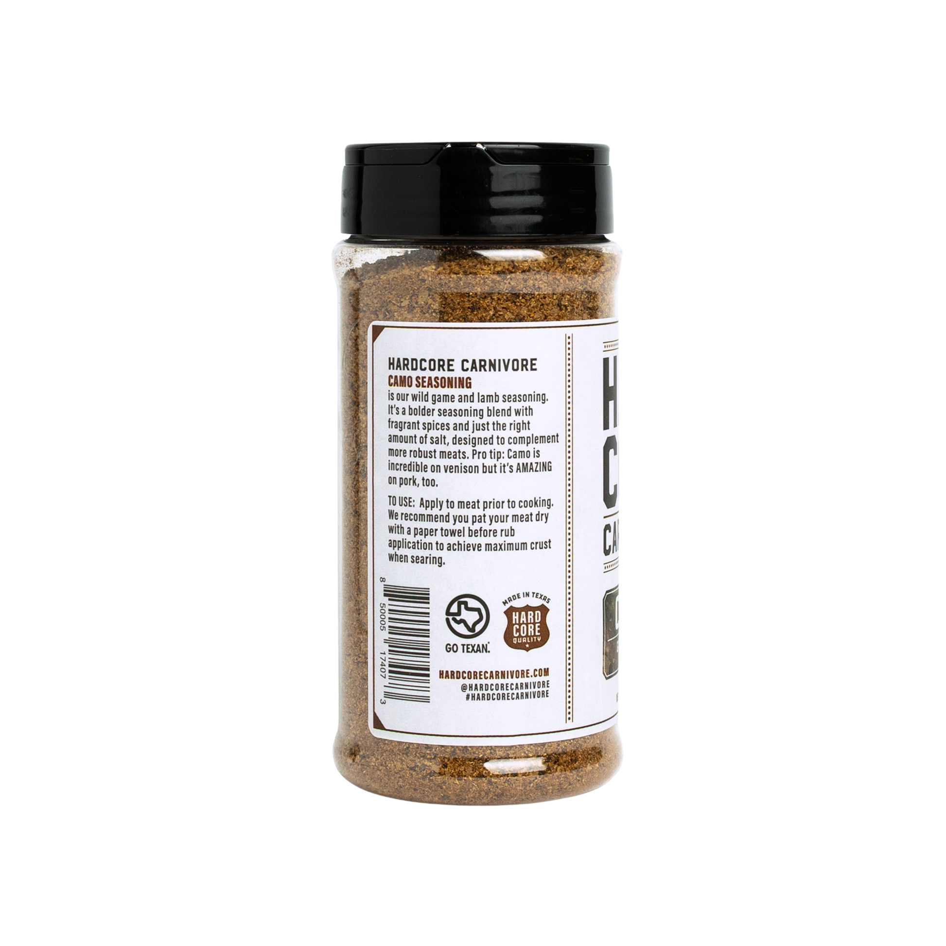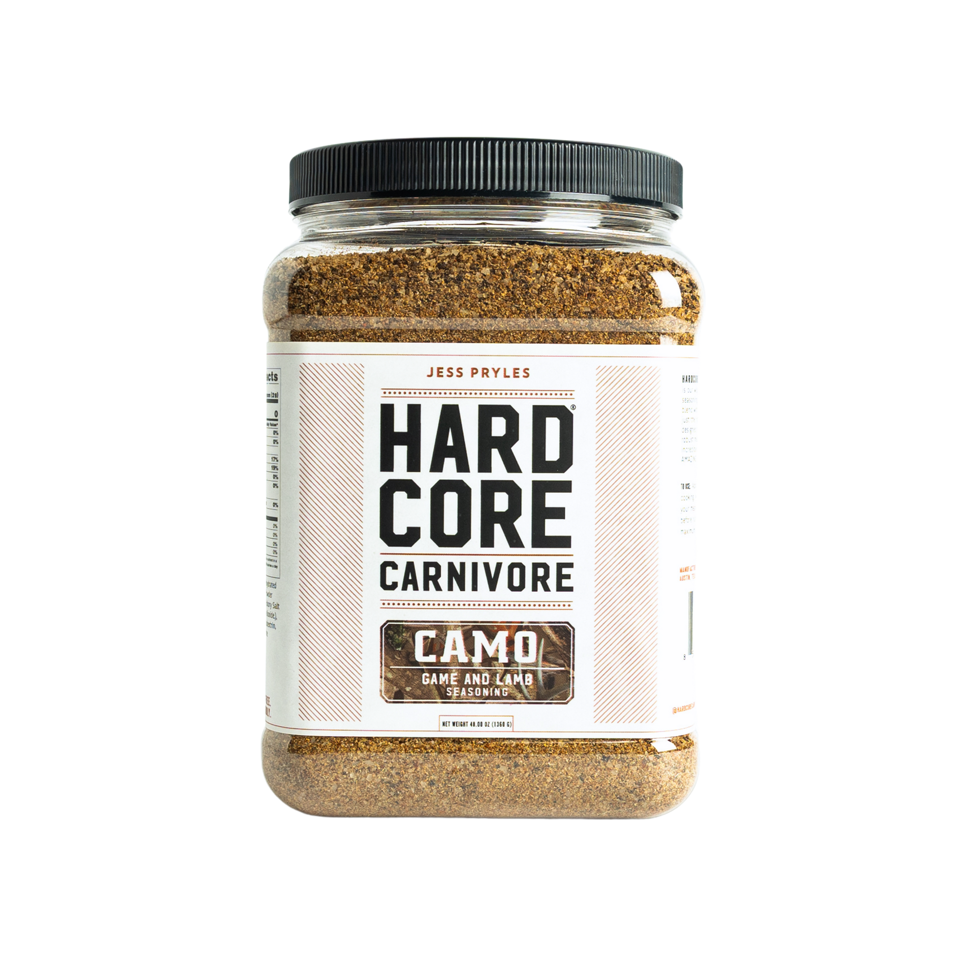 Hardcore Carnivore Camo is our wild game and lamb seasoning. It’s a bolder seasoning blend with fragrant spices and just the right amount of salt, designed to complement more robust meats. Pro tip: Camo is incredible on venison but it’s AMAZING on pork, too.