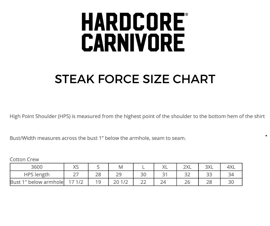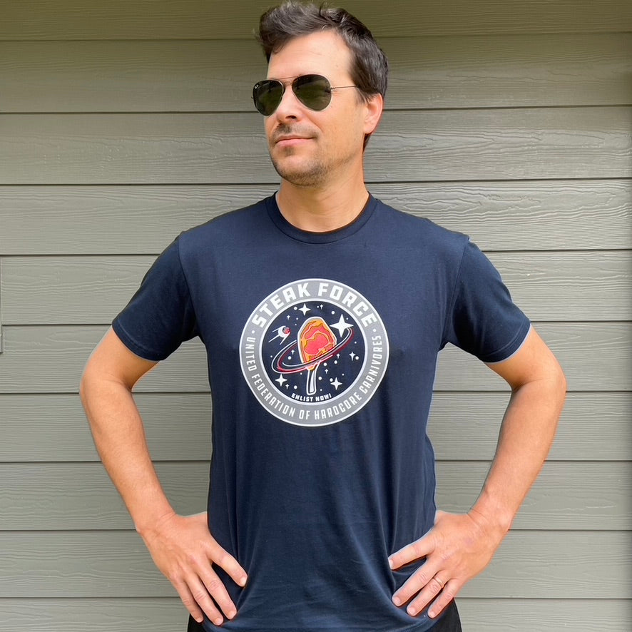 Join the Federation of Hardcore Carnivores with our STEAK FORCE shirt.